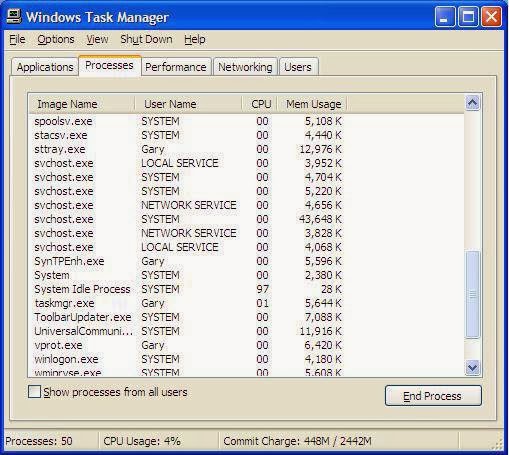 1) Press Ctrl+ Esc+ Shift together in Windows7/vista to open Windows Task Manager;